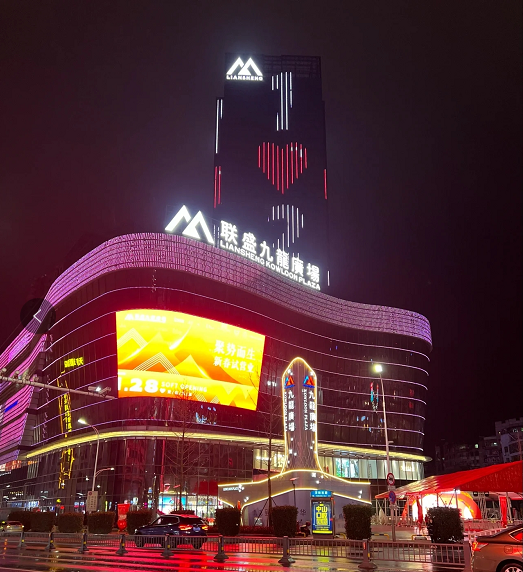 Liansheng · Jiulong square, located in the old urban area of Jiujiang, at the intersection of Jiulong street and Xunyang West Road, has a total land area of 19583 square meters, a total construction area of 175859 square meters and a building height of 149.4 meters. It is a commercial complex integrating many functions, such as high-end department stores, supermarkets, food squares, international studios, real ice skating rink, 5A office buildings, hotel apartments and so on