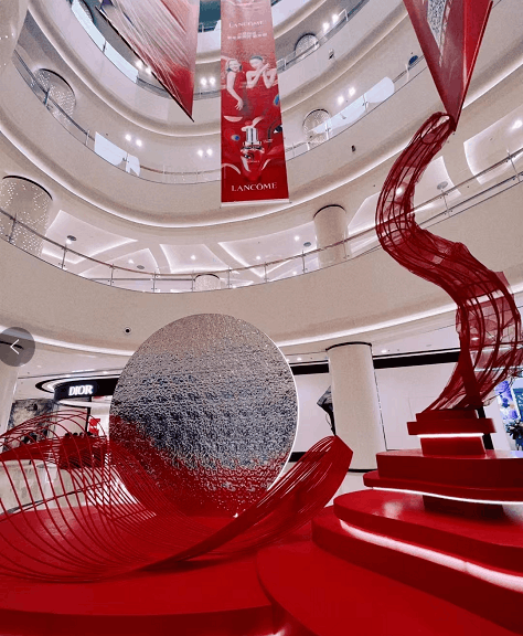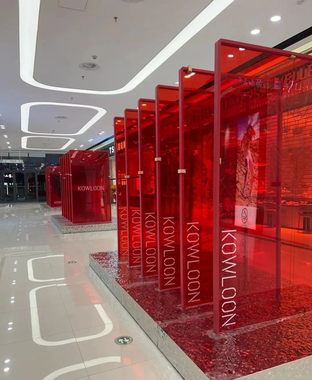 The special customized wide edge series downlights arranged on the ceiling provide uniform lighting for the whole central square and aisle. The simple but not simple lighting layout is bright, transparent and regular.