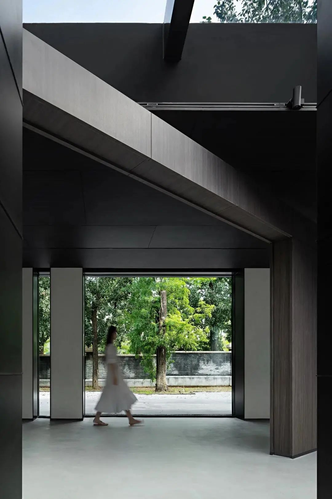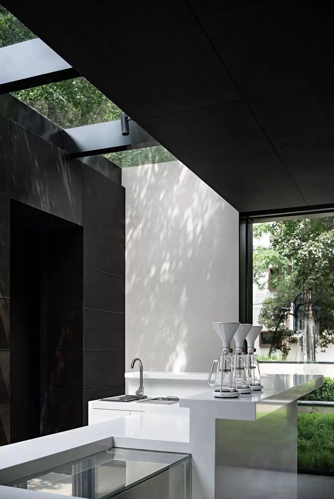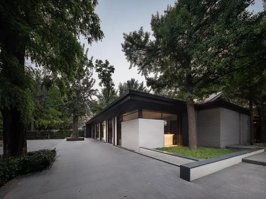 As the standard service-oriented functional area of space, the designer endows it with clean and neat characteristics with a minimalist block structure and color contrast level. The transparent ceiling introduces the natural luster and the reflection of branches and leaves. In the change of time and scenery, the natural light and shadow injects a touch of artistic flavor into the space.