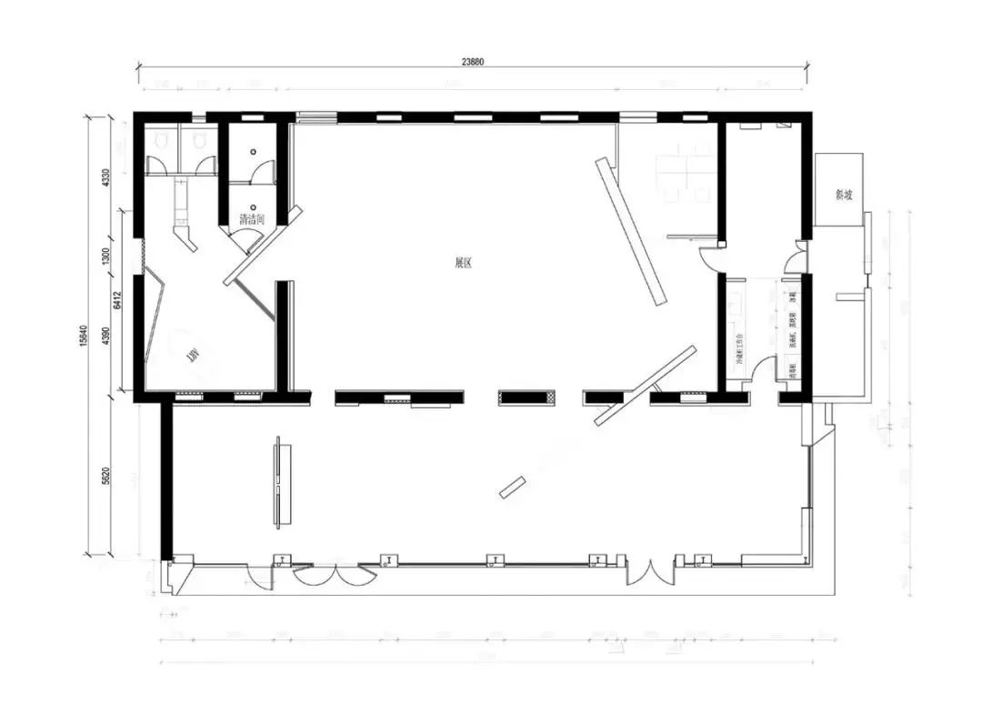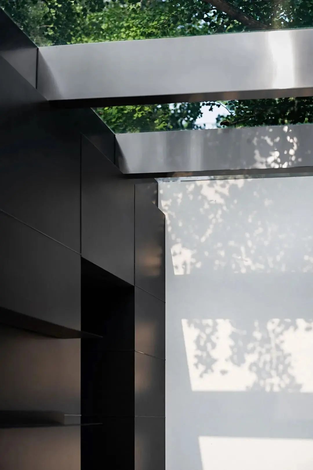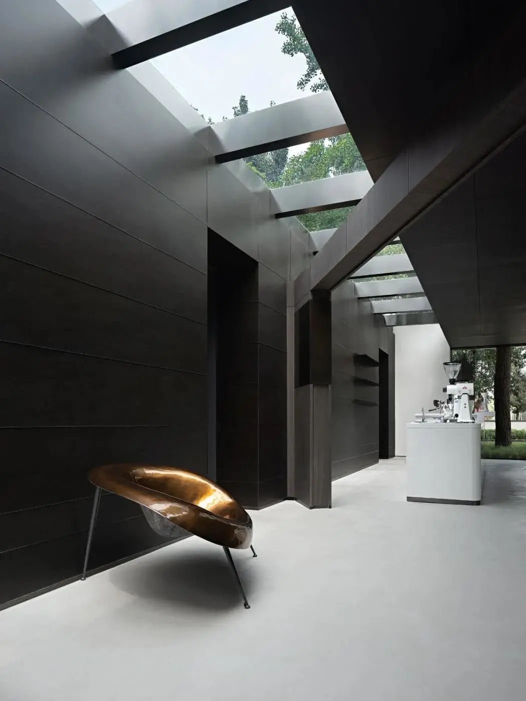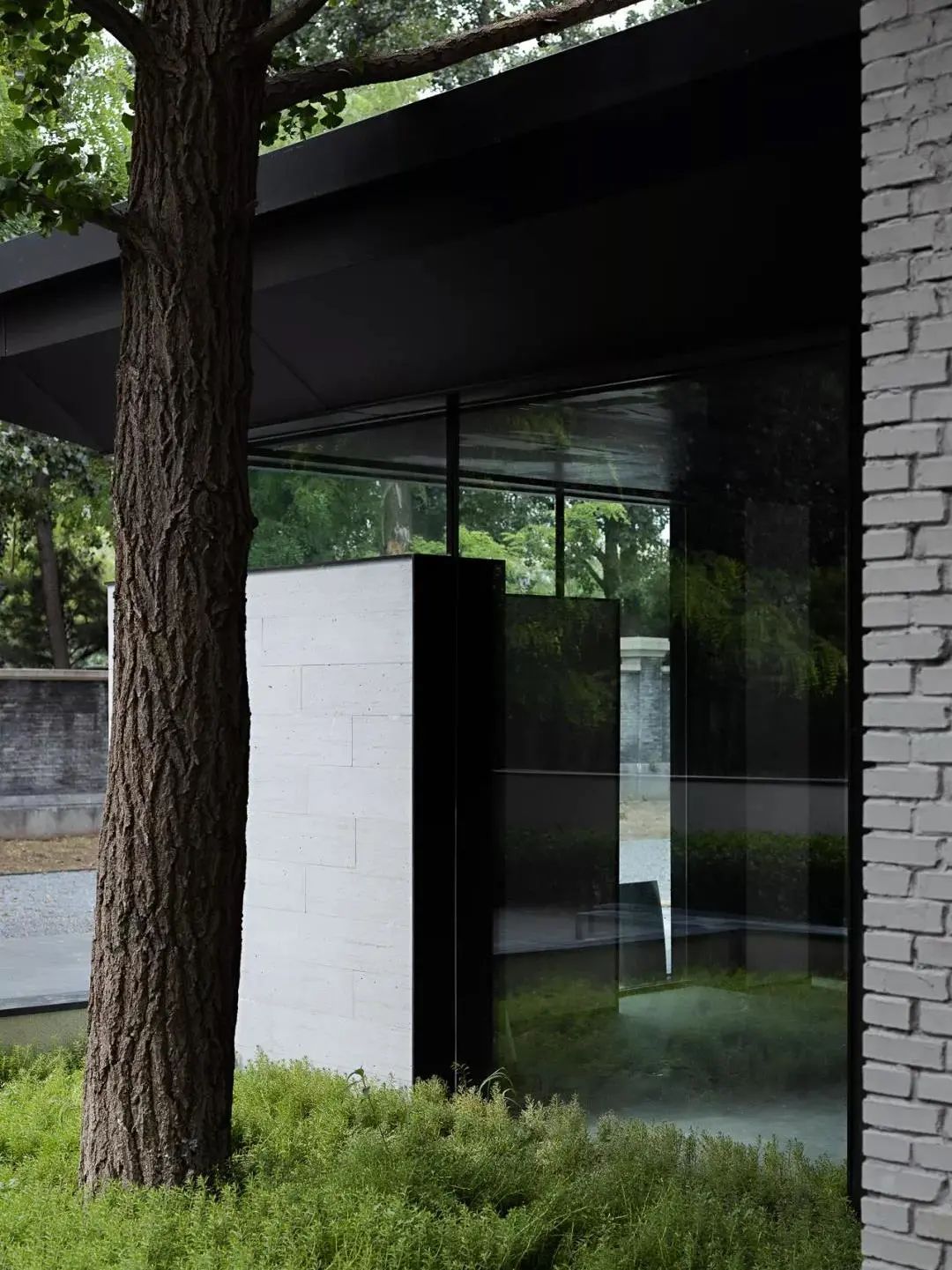 As the standard service-oriented functional area of space, the designer endows it with clean and neat characteristics with a minimalist block structure and color contrast level. The transparent ceiling introduces the natural luster and the reflection of branches and leaves. In the change of time and scenery, the natural light and shadow injects a touch of artistic flavor into the space.
