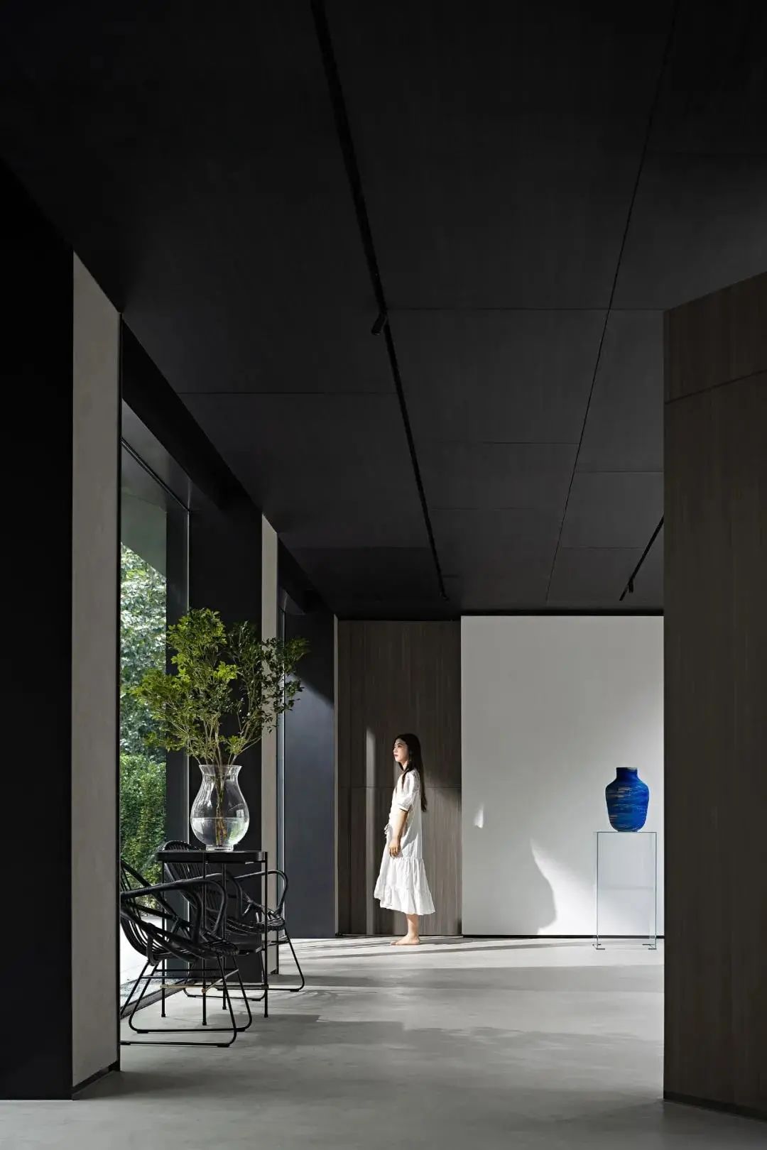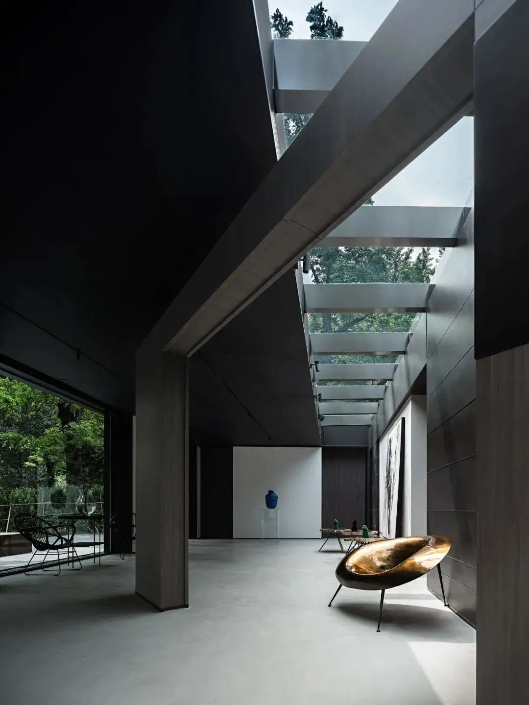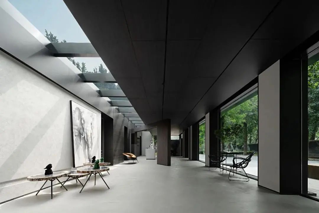 As an art exhibition hall, in addition to the natural scene, the space also needs to introduce the contemporary context of art and furniture to give people a sense of experience wandering in the depths of nature and the boundaries of art.